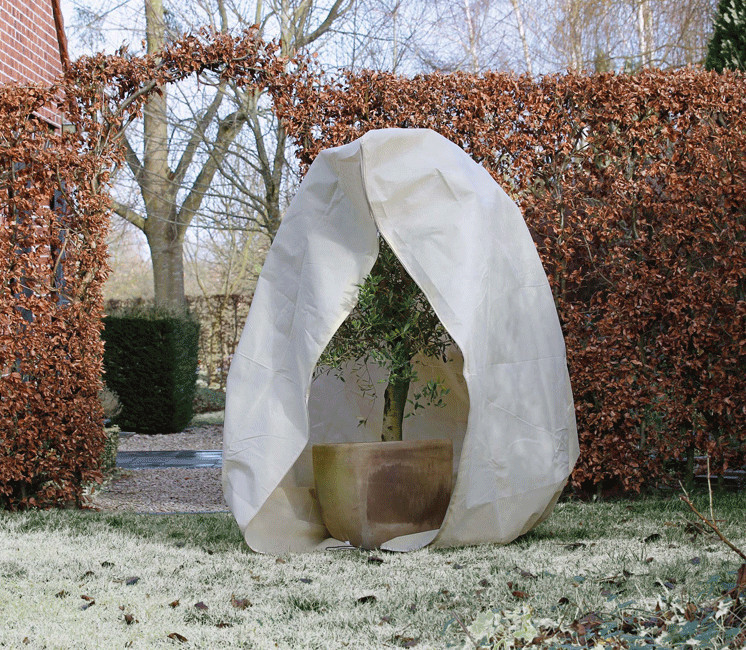1 housse d'hivernage, Ø150cm x 200cm, en polypropylène non tissé, traitées anti-UV, de coloris blanc et de densité 70g/m². Au bas de la housse, une cordelette de serrage avec système autobloquant pour une fixation rapide et système de fermeture zippée.